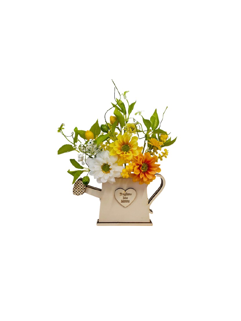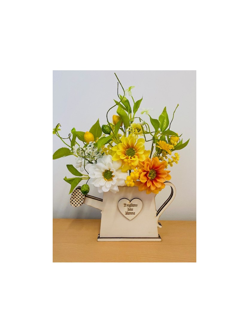 Annaffiatoio3d in legno con fiori 23x13.5 cm e cuore con scritta ti voglio/ti vogliamo bene ( da scegliere )