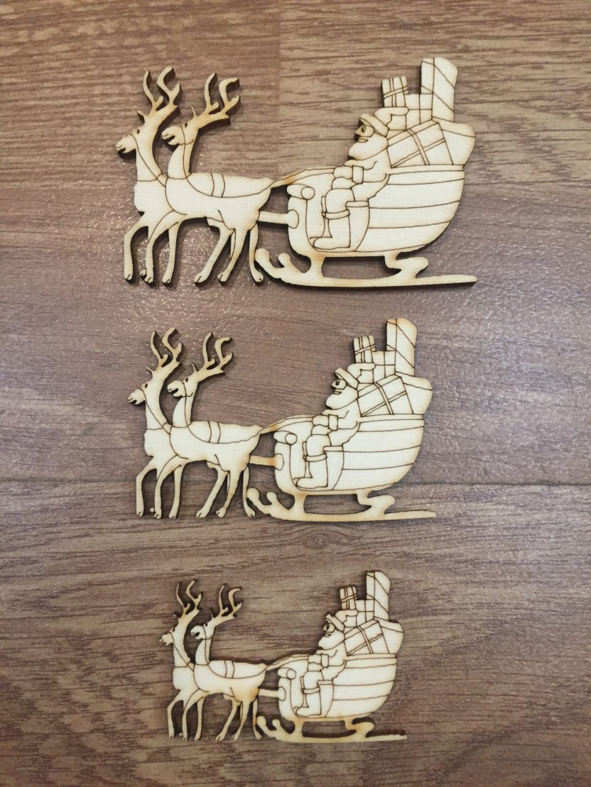Miniature in Legno Natale Slitta con Renna Grande 10cm Medio 7.5cm Piccolo 5cm