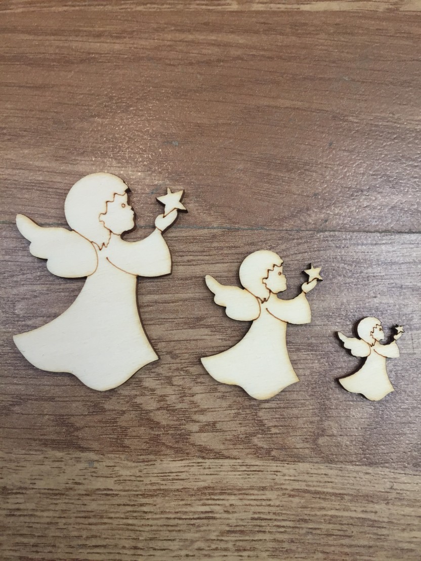 Miniature in Legno Natale Angelo 6 Grande 6cm Medio 4cm Piccolo 2.2cm